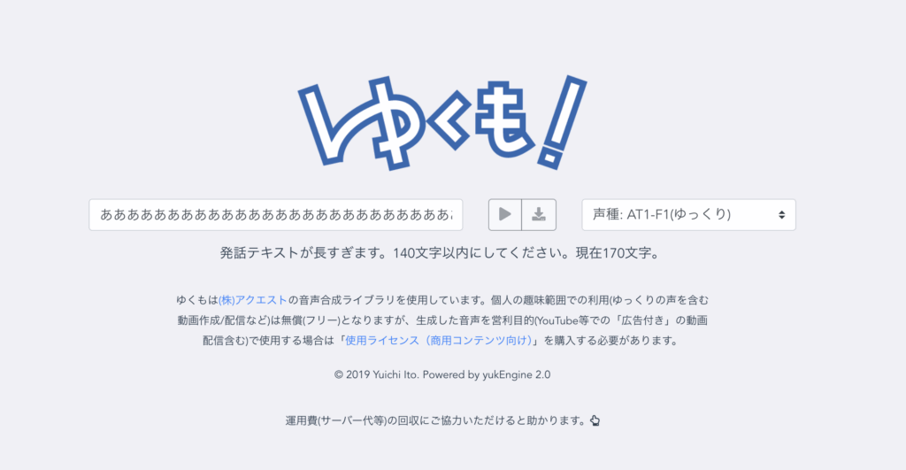 文字入力して再生させたり、再生した音声のダウンロードができる。